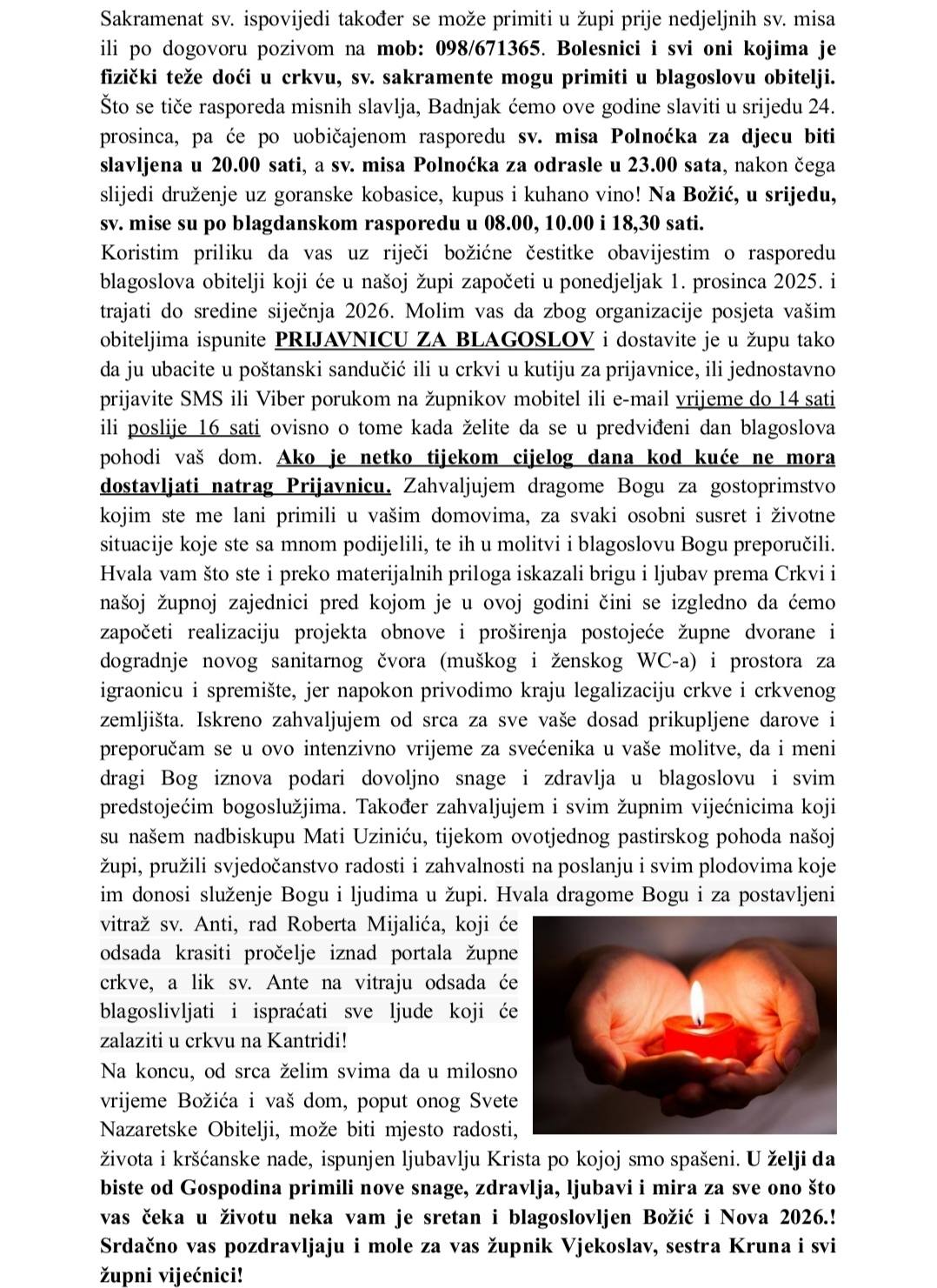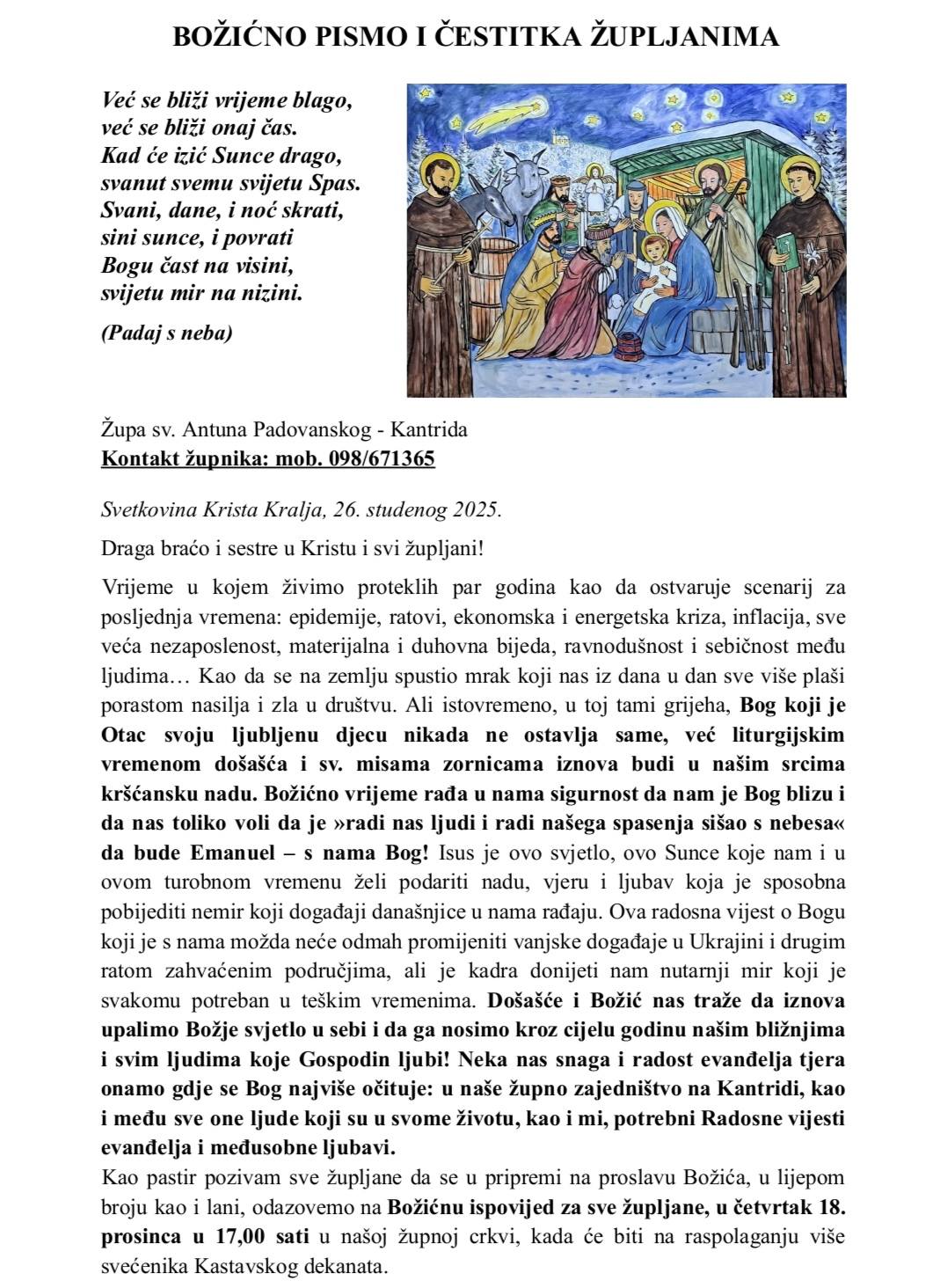 Božićno pismo i čestitka župljanima