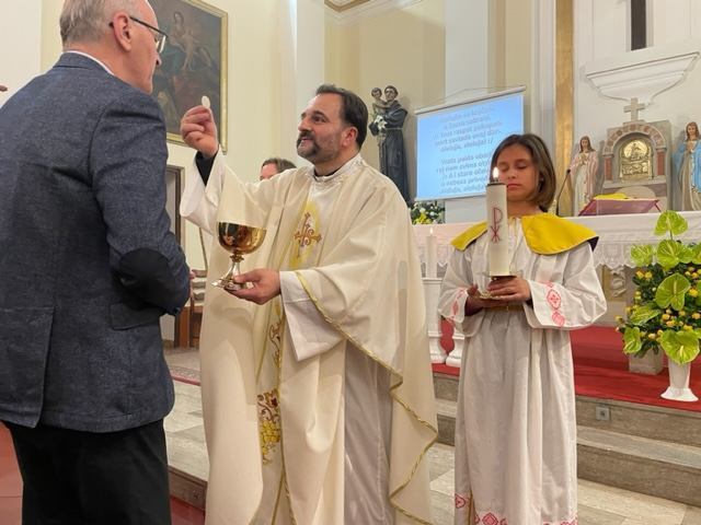 bio sa svima." Krist je Adamu odgovorio: „I s duhom tvojim!" Uhvatio ga za